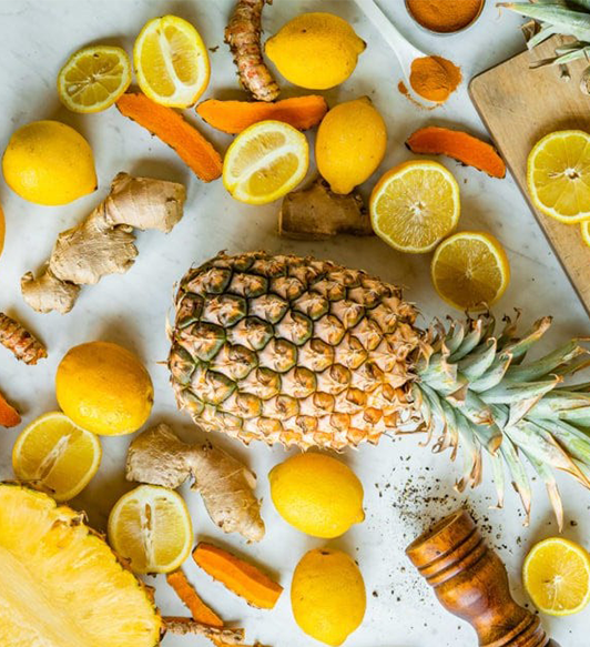 Chẳng hạn như Collagen, vitamin C, Củ nghệ, Quả dứa....